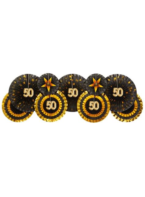 Комплект от 3 "50" асорти украсени фенове - Glitz & Glamour Black & Gold