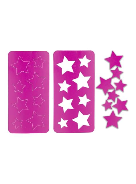 Включва: Палета за грим с 4 цвята, апликатор, 8 камъка и 3 шаблона